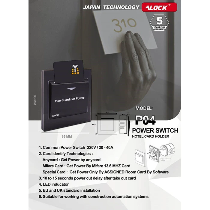 When users use another 13.56 Mayfair card or ALOCK hotel cards but are related to another room, these card holders do not connect the current and prevent users from abusing it.