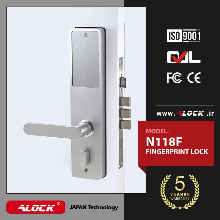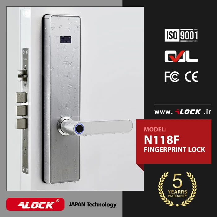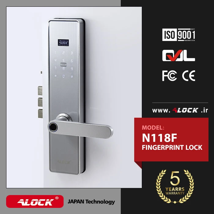 The N118F digital lock is based on the popular N118P design. The need of the country and residential and administrative projects for security with up-to-date technologies has led to special designs in the ALOCK electronic lock industry. One of the features of the N118F handle is a beautiful and elegant design. This lock is designed and manufactured with parts made in Japan, which has increased the life of this product compared to other products on the market. The body of this handle is made of completely metal parts, which has made it more durable than other brands in the market. The N118F handle can store up to 300 direct (offline) users. Entering and exiting people by mentioning the exact date and time of traffic, defining one-time passwords for users with different access levels such as babysitter, caretaker, employees with different contractual intervals, passwords with imaginary function to prevent hacking by Others, the approval of two-stage entry, free passage and free traffic for busy times such as parties, etc. are another feature of this product.